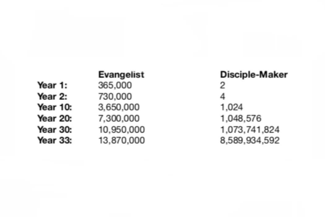 If you had the option to lead 1,000 people to Christ every single day of your life, versus making just one disciple a year—who would then go out and make another disciple of his own each year—which option would you choose?